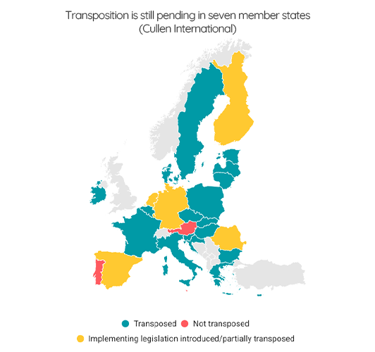 Several member states have transposed the “stop-the-clock” directive since Cullen’s July update, in addition to France which did so in April.