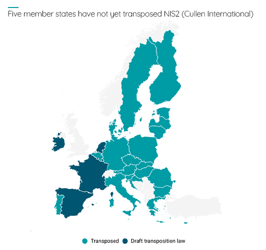 Five member states have not yet transposed the NIS2 directive, which aims to establish a high common level of cybersecurity across the EU.